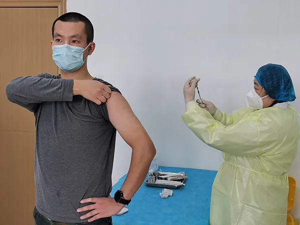 19日早上7点半左右,我接到电话,通知我体检合格,正式成为一名试验志愿者。我收拾好东西后,就去指定的地点接种了疫苗。我被分在了低剂量组(注:108名合格志愿者被分成低剂量疫苗组、中剂量疫苗组、高剂量疫苗组,每组36人;中低剂量疫苗组接种1针,高剂量疫苗组接种2针),接种疫苗的时间是当天11点半左右。