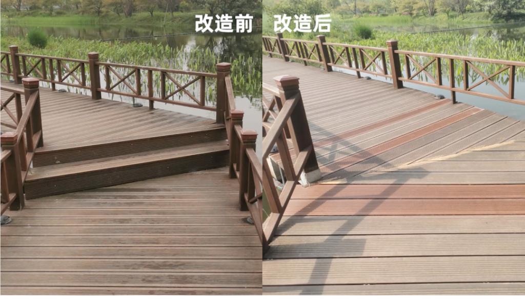 阿里巴巴西溪园区内的木栈道,重新铺平