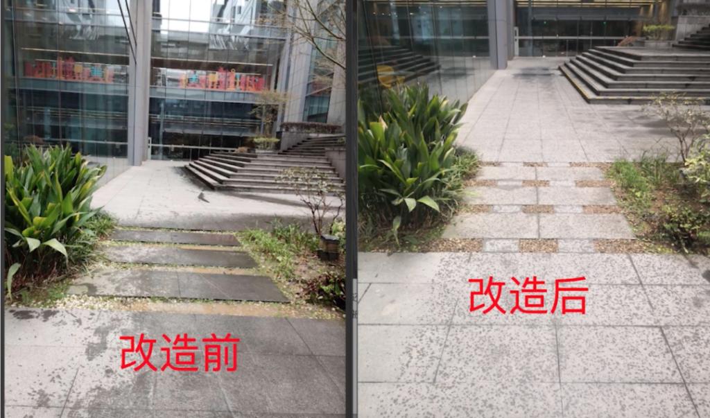 “行政部同事糖排说,以前他们没有想到这个问题,他会赶紧找人改造。我反馈这个事的时候是个周五,周一一大早,糖排就发图片过来说,周末把路改好了。”郭百岭说。