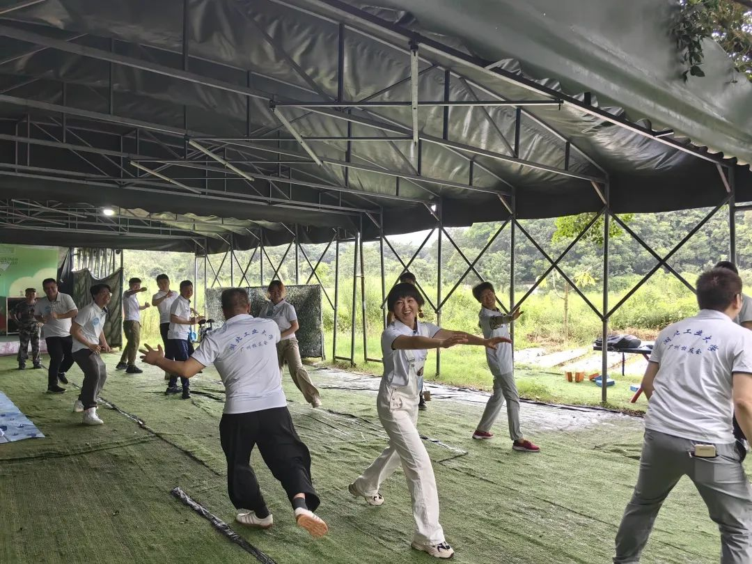 为了让大家放下拘谨,促进彼此的相识与了解,首先进行团建破冰小游戏。在拓展教练的主持下,大家分成两组,并从“小鲜肉”中,推选出两位年轻帅气的组长,并各自取了情系母校、极具特色的队名:巡司河队、堕落街队。