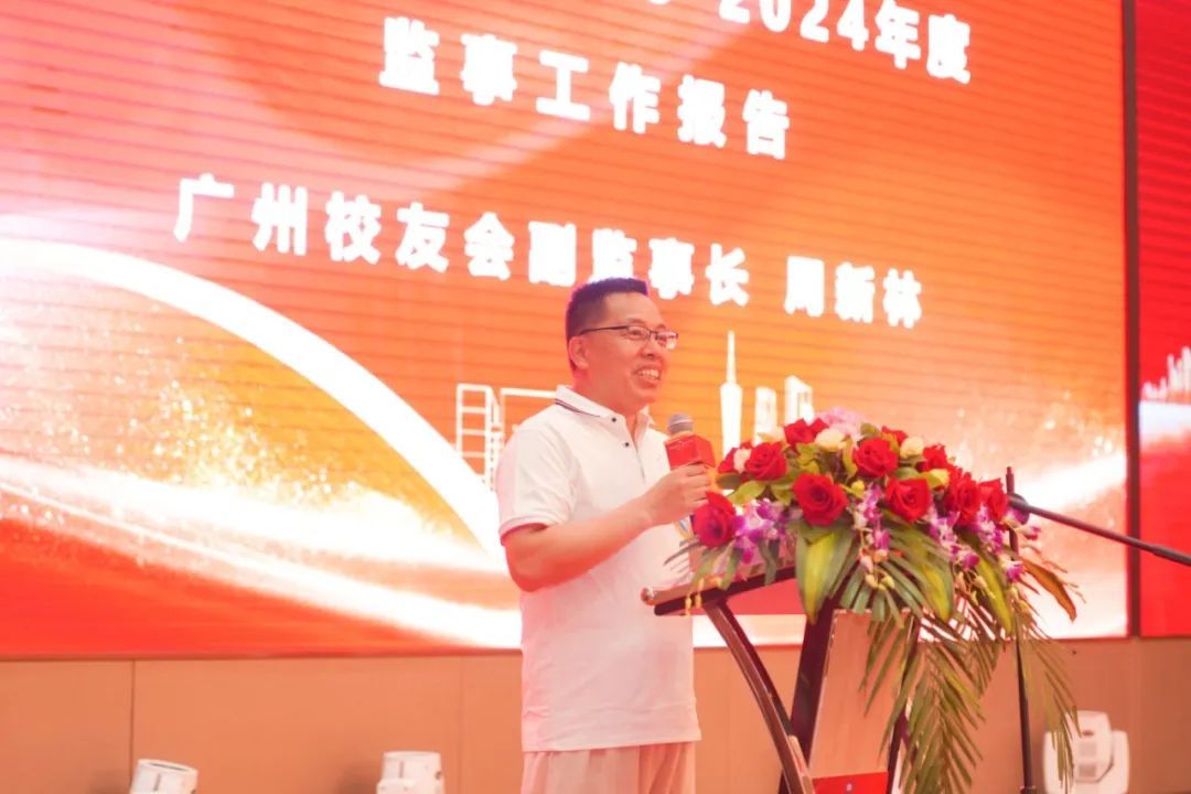 江先彭(05电商)秘书长作了2023-2024年度和第二届理事会工作报告。在过去的一年,广州校友会一是创新设立“大咖校友”访谈栏目,并常态化举办“赢在南粤”讲坛活动;二是发起并成功举办母校大湾区校友羽毛球联赛,并常态化举办足球、篮球等活动;三是成功举办2023届毕业生迎新活动,帮助新校友开启人生新的篇章;四是卓有成效地开展互利共赢的“造血活动”,促进校友会稳健发展;五是扎实有效地开展其它有关活动:常态化发布当天时政要闻,组织参观校友企业并播报校友企业信息,积极开展对外交流合作。